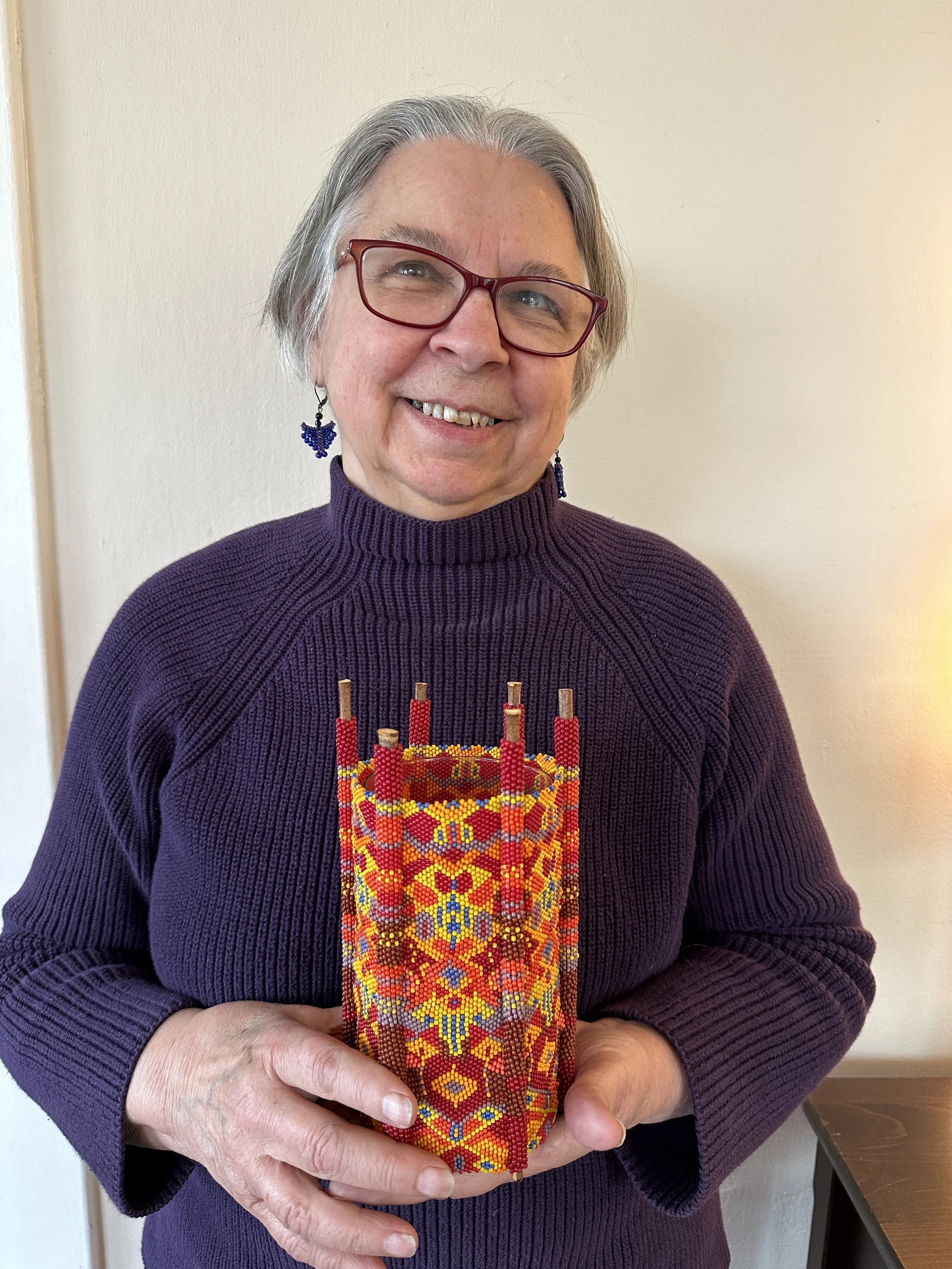 In the 30+ years I have been beading I have come to appreciate the wide variety of art that can be created with beads. I work primarily with smaller glass seed beads using an off-loom bead weaving technique known as peyote stitch. No glue or epoxy is ever used. Many of my sculptures are made by beading over natural materials such as bamboo, driftwood, antlers and river rocks as well as vases and urns. I love working with color to create vibrant patterns which are all free-form and unique to each piece. I derive much inspiration from modern and ancient beadwork from Egyptian, African, Native American and aboriginal cultures. My work is meant to be held and touched and enjoyed for many years. I hope you find something you love! -Pamela Jensen
